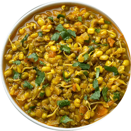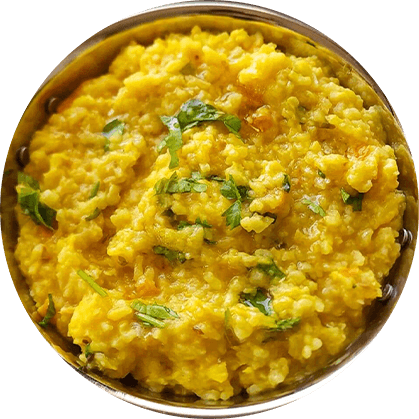 A wholesome Indian one-pot dish made with whole moong and rice, slow-cooked with mild spices, turmeric, and ghee for comforting flavor.