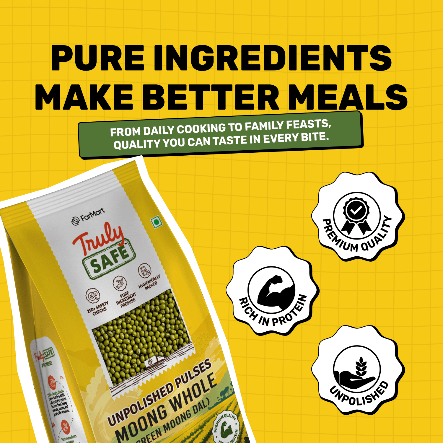 Naturally protein-rich and incredibly versatile, Whole Green Moong is a kitchen essential suited for a wide range of preparations. Whether used for sprouting, traditional dals, or everyday meals, it cooks evenly and delivers a consistent, satisfying texture. A dependable choice for households seeking nutrition, quality, and reliable performance in daily cooking.